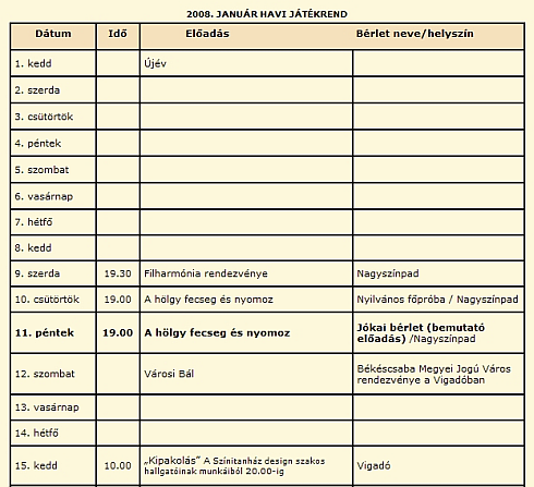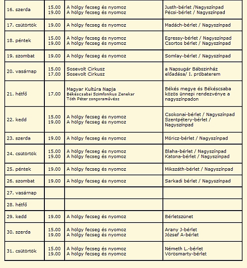 Győrei Zsolt: A Latabárné fiaFarkas Arnold Levente: A pontos időMárton László: Nibelungok. Második rész – Kriemhild bosszúja, 5. felvonásMárton László: Nibelungok. Második rész – Kriemhild bosszúja, 4. felvonásMárton László: Nibelungok. Kriemhild bosszúja, 3. felvonásMárton László: Nibelungok – Kriemhild bosszúja – Második felvonásMárton László: Nibelungok. Kriemhild bosszújaZalán Tibor: MiskaGyőrei Zsolt – Schlachtovszky Csaba: A gyulai vérfürdőMárton László: Nibelungok – Ötödik felvonásÖsszes