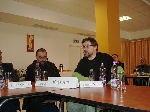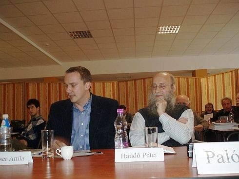 A konferencia vezetősége (a háttérben L. Simon László, Juhász R. József)