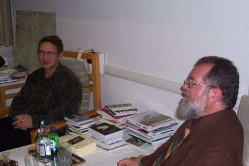 Beszédes István és Fekete J. József a Bárka szerkesztőségében