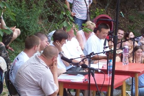 Az Irodalmi Jelen különítménye a közelben ütött tanyát, a szállás tapolcai, ami itt a pazar szinonimája. Lovunk (Renault) a karámban piheg, s bár szívesen néznénk koncertet a közeli Monostorapátiban, a hajnali hazagyaloglás gondolata szép embertelenségnek tűnik. Marad a maradás, és a rápihenés az IJ-fesztivál napjára, a szombatira.
