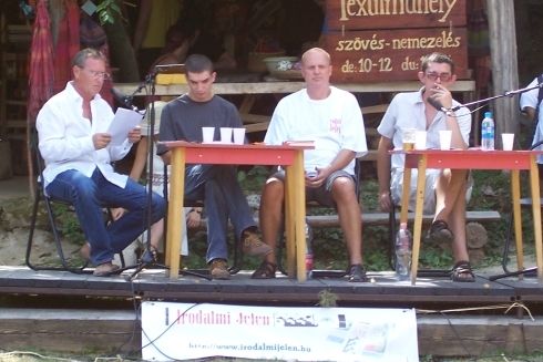Hiányzott Onagy Zoltán. A bőség zavara című rovat mindenese eljutott már néhány helyre a Babits-szexregénnyel (Tavaszi iramlás ősszel), kár, hogy Kapolcs nem lett kicsit megpiszkálva esztergomilag, mint tavaly: Ilonka és a srácok, a hálátlan Gellért, valamint a gyerekek réme, a mefisztoid Babits. Az áthidaló megoldás kiválóra sikeredett, Tarján Tamás az IJ augusztusi számába két rövidprózát publikált Benyhe Istvánt szólítja a mikrofonhoz. A lőgyakorlatos történet hangvétele átélt élményről árulkodik, s erősen rájátszik Karinthy anekdota-parafrázisára, célozni tanulnak a katonák.