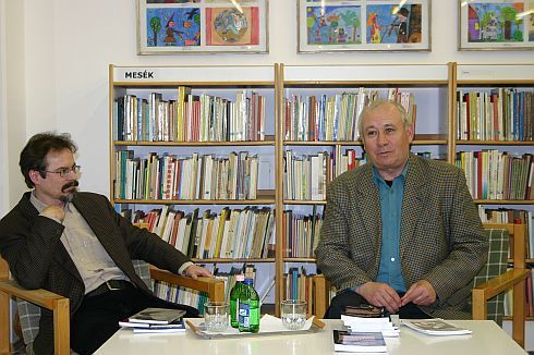 Majd a balladákról. Vári Fábián László nem csak költő, de balladakutató is. Meséli, hogy ez a munkája szintén a Forrás Stúdióból indult. A hivatalos kultúrpolitika azt kommunikálta, hogy a magyar irodalomnak nincsenek gyökerei Kárpátalján, nincs olyan hagyomány, amire rákapcsolódhatna a kortársi magyar literatúra (gondolom, az üzenete ennek az lehetett, hogy ha nem volt eddig, ha megéltek nélküle, akkor ne is legyen, ne is akarjanak ezután se, mert milyen okon-jogon). A Forrás Stúdió alkotóit ez bőszítette, meg igaztalannak is gondolták az állítást. Bizonyíték kellett, hogy másképpen áll a dolog, mint ahogy mondják, és a népköltészetben meg is találták a gazdag ősiséget. Az viszont kint volt terepen. Ekkor a 70-es évek elején járunk, a szóban forgó költők-írók fiatalok, erősek, éhesek még — elindultak gyűjteni. (Ha jól értettem, egész mozgalommá szélesedett a népdal- és népballadagyűjtés, eredményei pedig messze túlszárnyalták az eredeti célt, a magyar irodalmi tradíciók létének alátámasztását.) Végigjárták a falvakat, és újra, az évtizedekig tartó munkájuk jutalma gazdag szövegbázis. Furcsa történet, érdekes, ismerős is lehet. Az esik meg tehát, hogy lírikusok, szépírók (szakmán kívüliek) vállalnak néprajzos kutatói feladatokat. Előbb, gyanítom, lelkesedésből, amatőr módon (néhány egyetemistáról beszélünk), aztán egyre nagyobb rutinnal, szakértelemmel, míg végül a szereptévesztésből valódi tudományos produktumok lesznek, az önszerveződő mozgalom tagjai ténylegesen kutatóvá válnak (Vári Fábián László a napokban készül megvédeni doktori értekezését, néprajz, kárpátaljai magyar és ruszin népballadák). Sajátos, aligha véletlen egybeesés, hogy az anyaországbéli népi írók, költők szintén végeznek ilyen jellegű tevékenységet a 70-es években, Csoóri Sándor tavaly Békéscsabán is beszámolt a falukutatásban, szociográfiai feltárásban szerzett élményeiről, az öntevékenyen végzett gyűjtőmunkáról. Úgy tűnik, a szépirodalomnak ez az ága forrásokat (témákat, kifejezésmódokat) keresett önmaga számára akkoriban, miközben (egyúttal) aktivitásuk hiánypótló is, a néprajzos kutatások még kialakulatlanok, a szociológia diszciplínái pedig nemkívánatosak voltak az államszocializmusokban (mivel társadalmi különbségek a marxista doktrína szerint úgysem létezhetnek). Az etap végén Elek Tibor átveszi a szót, szépen bemutatja, hogy a népballadai hagyomány hogyan szervesült Vári Fábián László lírájában, majd a vendég (felolvasással gazdagítva) bemutatja a nemrég új kiadásban megjelent Vannak ringó bölcsők. Kárpátaljai magyar népballadák című kötetet, amely az általa gyűjtött kárpátaljai népballadákat, azok értelmezését, valamint a dallamvilágukat rögzítő kottákat közli.