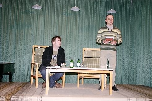 Telt ház április 8-án a Békéscsabai Tavaszi Fesztivál zárórendezvényén a Békés Megyei Könyvtár nagyelőadójában – legutóbb Vámos Miklós késő őszi könyvbemutatóján voltak itt ilyen sokan irodalmi esten –, de hát mikor is jönnének el a kortárs magyar irodalom helyi barátai közül sokan, ha nem a tékozló fiú első igazi hazatérésekor: Grecsó Krisztián új regényének (Tánciskola) bemutatása alkalmából. A beszélgetőtárs, Szabó Tibor frappáns, a regény lényegi jellemzőit felvillantó (gömbölyűre csiszolt próza, nagyon finoman stilizált, még a korábbi prózákhoz képest is rendkívül választékos szöveg, egy megható történet és közben nagyon komoly emberi dráma) bevezetője után, az első, a Békéscsabához fűződő viszonyára irányuló kérdésre válaszul mondja is mindjárt Grecsó aktuális élményét, hogy néhány órával korábban csak három kisfröccs árán tudott a csabai sétálóutcán végigmenni, s hogy ez milyen jó érzés számára. Bő öt évig volt a könyvtár munkatársa a Bárka szerkesztőjeként, előtte három évig a főiskola hallgatója, csoda-e, ha nagyon kötődik a városhoz, s hogy nagyon bensőséges hangulatú, otthonosságot sugárzó leírások jellemzik a tótvárosi (békéscsabai) helyszíneken játszódó regényt, ahogy Szabó Tibor jellemzi. De ezt az otthonosságélményt közvetíti a találkozó is, Grecsó éppolyan gördülékenyen, szépen megformált mondatokban beszél, ahogy ír (láthatóan jól érzi magát a hazai pályán, mondja is, hogy itthon annyira jó, hogy mindennek tudok örülni), Szabó ideális beszélgetőpartner (felkészülten adja alá a lovat, könyökére támaszkodva, csillogó szemekkel hallgatja), a közönség is érzékenyen, minden poénért hálásan követi a diskurzust. Feltűnő, hogy Grecsó az est nagy részében elsősorban magáról, a saját élményeiről beszél – kezdve azzal, hogy nem volt mindig ilyen harmonikus a viszonya a városhoz, kezdetben nagyon fura, zárt világnak látta, évekbe telt a falak áttörése, bezárva a budapesti akklimatizációs élményeivel –, s közben rendre kiderül, hogy egyúttal a regény világáról is szó van. Ritka olvasói élmény lehet a jelenlévők számára ilyen testközelből megtapasztalni, hogy egy író a teljes mértékig fikciós világában is mennyire a saját életéről, a saját gondjairól képes beszélni. Például a felnőtté válás, a pályakezdés nehézségéiről, arról, hogy a mai világban már nem nagyon léteznek beavatási rítusok, a hétköznapokban dől el, hogy ki-ki el tudja-e fogadtatni magát a környezetével, az előtte járó generációkkal, s hogy mindenkinek a saját felelőssége, hogyan alakítja, építi fel az életét, mindenkinek magának kell megtalálnia a társadalomba való integrálódás során a maga túlélési stratégiáit. A regény főhősének, Voight Jocónak ráadásul egy olyan, a társadalmi konvenciókat elvető, az élethabzsoló nagybátyja, Szalma Lajos által kínált alternatívával, kísértéssel is szembe kell néznie, ami sokkal szabadabbnak, értékesebbnek látszik, mint a hagyományos hivatali, kispolgári létezés. De a regény kapcsán szóba kerülnek a korábbi címei (a Doktor urak, Ördöglugas) elvetésének okai mellett, az álomvilágba menekülés, a misztériumépítés értelme, a drogozás szakrális háttere, a szexuális elhajlások, aberrációk szerepe (Szabó szerint a piros 18-ast bátran rá lehetne tenni a borítóra, a szerző viszont a szerelmi kapcsolatok érzelmi részét hangsúlyozza), a fausti mellett a cervantesi hagyomány (Grecsó elárulja, hogy alapszöveg volt számára a Don Quijote) fontossága, a jellegzetes apakomplexusok és a népi katolicizmus mindent átható ereje. S természetesen, olvas is a szerző, méghozzá a regény egyik leghangsúlyosabb részéből, amely a gyulai úti libagázolási jelenettől, a világ- és a magyar irodalom jeles műveit is megidézve, végül a csabai vasúti hídról Magyarország sajátos megálmodásáig ível. Olvasásra felhívó jelenet az új Grecsó-műhöz igazán kedvet csináló est végén.