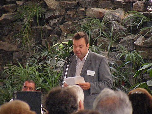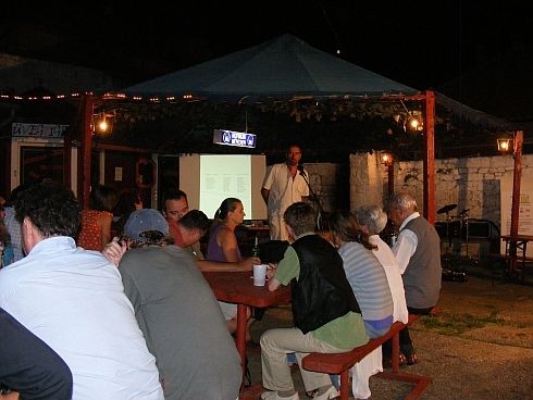 [SzT] A kollégium kertjében, kétszáznál több néző előtt tartott bemutatkozó estet lapunk 13-án nyolctól. Elek Tibor röviden beszélt a Bárka céljairól, eredményeiről, majd bemutatta a folyóirat munkatársait, akik (Grecsó Krisztián, Kiss László, Szabó Tibor) felolvastak műveikből. Az esten két vendégfellépő is megtisztelt bennünket jelenlétével, Fecske Csaba és Zalán Tibor a 2008/4. Bárkában megjelent verseikből adtak ízelítőt.