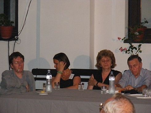 A (fél)kerekasztal délután is folytatódott, amelynek Bazsányi Sándor és Ekler Andrea kíméletlen iróniája adott pazar keretet. S mi valamiért olykor-olykor arra gondoltunk, hogy ha határok nem is, legalább nem-átjárható árkok vannak ebben a nagy magyar irodalomban, s meglehet, betemetni problémás őket, tágítani bizonyosan tágíthatók.