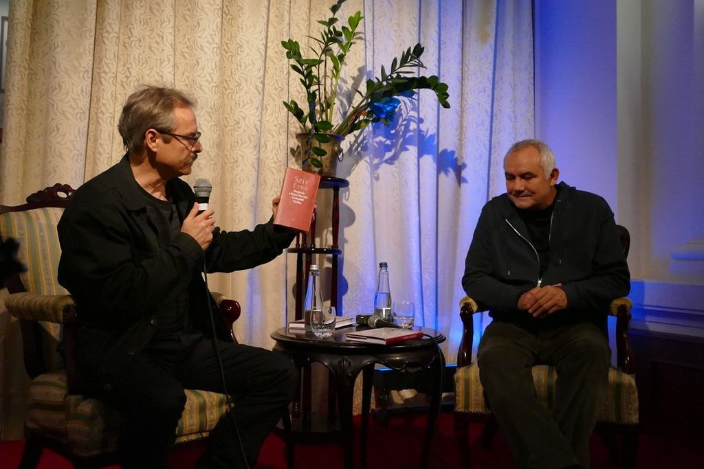 Darvasi László jó felolvasó. Szövegei lüktető fantáziával, színes nyelvvel, széles regiszterben áradó mondatok. Karádi Katalinról írt tárcájából olvas egy szívszorító részletet. Elmondja, hogy drámát is írt Karádiról (éppen Elek Tibor kérésére), ahogy Bajor Giziről is, ezekről a bátor, megalkuvást nem tűrő művésznőkről, akik szembe mertek fordulni a hatalommal, akik a szenvedést színjátékként értelmezték.