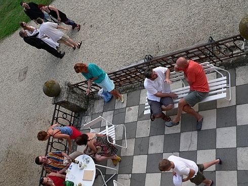 A vonatról leszállva a Vörös-család megjelent tagjai: István, Misi és Loni rögtön a saját taó meglelésére buzdítottak. Ennek fényében nem vártam a többi léha JAKuzával a busz megérkezéséig, sőt, Misi virtuális Szigliget-taxiját sem hívtam segítségül, hanem tanítóim kíséretében nekivágtam az embert próbáló Útnak. Sushirohasztó hőségtől és kulizástól kifáradt testünket az Esterházy-kazamata étkeinek a zamata tette ismét cselekvőképessé és beköltözésre alkalmassá. A varázslatos hegy sárga házának könyvtárszobájában eltöltött első szemináriumi ülések után Baglyas Erika fájdalomból rakott tüzét álltuk körül, aztán a Ladik Katalin-Czapáry Veronika-páros performansza következett színpompás üveglapokkal és tojásos villanykörtebefőttel. Révész László László és Sugár János zárták a sort, végül a performanszok helyét átvette a róluk szóló önreflektív diskurzus.