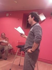 Kétszer (háromszor) olvas a szerző. A gyulai kisprózákból néhány darabot, a Kosztolányi és a kábítószer című humoreszkből valamennyit, és részletet egy lassabb, nyugisabb szövegből. A közönség veszi az adást, együtt élnek a hangzó művekkel, amire bizonyíték az is, hogy (ilyen se sokszor fordul elő irodalmi esteken) a végén kérdezni ugyan nem akarnak, de visszatapsolják még a vendéget — olvasni. Hm.