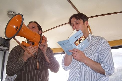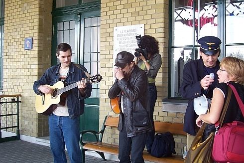 zakatolt az október tizennegyedikei sínbusz, pedig amerre jártunk, domb se nagyon akad, ám ilyesmin gondolkodni, geopolitikai realitás ide vagy oda, nem nagyon volt idő, egy töri- és egy irodalomórát magam mögött hagyva csusszantam be a szegedi nagyállomásra, kiadós vonat-alvás után, szerencsésen letudva a megszokhatatlan konzervdoboz-szerelvényen utazás nyűgös kétszer hatvan percét, a látvány szemet gyönyörködtető, egyre több érdeklődő a peronok peremén, közép- és felsőbb iskolás diákok, fiatal tanárok, idősebb újságírók, kameraman és riportercsaj, nem is egy, több, közéjük MÁV-egyenruhába bújtatott egyének vegyülnek, gyanúsan nem sok közük lehet a társasághoz, mi több, felismerni vélem Davort, aki az egyik fő szervező, Orcsik Roland könyvbemutatóján szerbül olvasott a kötetből, és aki, ahogy ez hamar egyértelművé válik, a nap egyik sztárja, bemondó és kalauz, és performer és informer, sörös jókedv, az első fél litert akkor kapom, amikor megérkezik Kollár Árpád, a másik fő szervező (két fő tehát), épp Lanczkor Gáborral idézzük fölfele boldogult úrfikorunk állomásait, borzalmas pályakezdések, brutális folytatások, kilátástalan jövőképek, fájdalom, de válságban az ország kultúrája, nagy baj azonban nem lehet, a sör ugyanis nem annyira langyos, mint a Zorán dalban, a beszállás tumultuózus pillanatait rögzíteni nem sikerül, tévések szuszakolnak ide-oda minden útba tévedőt, fényképezőgépem a táska legalján lapul, beparázott vakond, mire előbányászom, a csurig telt masina, akár Ganxsta Zoliék a klipben, már a szerb határ felé zötyög, üdvrivalgás az állomásokon, bonus track a határátkelőhelyeken, a délszláv határ őrei marconábbak magyar kollégáiknál, de ekkor már a második sör bontódik, és egyre megfontoltabban hasít az Ezüstnyíl, és egyre jobban húzza a Shinobusi Band, nem létezik, hogy létezik ilyen kontraszt, a szájharmonikás srác százéltű rocker, egy szerb Iggy Pop, inas végtagok, tetoválások, nem a mostanságos kor divatja szerintiek, társa szolid egyetemistának tetsző dobgitáros, lendületesen szaladgál a csukló a hangszer nyakán, közben felolvasások, Kemény Istvántól Szijj Ferencen át, Boško Krstićen keresztül Lanczkor Gáborig, ha nem csal a szimatom, Grecsó Krisztiánnak regényrészlet jut, nekem rövidpróza, megvan az egyensúly, recseg a méretes megafon, igehirdetés forog fenn, kattognak a kerekek, aztán ugyanők szerbül, tolmácsolva, miként ha rossz (jó) versben, döccenő követ döccenőt, a sínbusz zötyög a szabadkai állomás felé, ahol a feltüzelt utasok valósággal szétszednek, mint IX. Lajos holtesttét partot éréskor a hívek, kelendő a Bárka (hasonlat mit sem ér), a kofáskodás után laza városnézés, Boško Krstić vezetésével, szecessziótól szecesszióig, színháztól színházig, literatúrtársaság Kosztolányiék városában, tanárok és nem, oldott csevely, baráti csoszogás a napsütötte sétálóutcán, többen folyamatosan interjút adnak, meglehet, végeláthatatlan sorozatok következnek a tévében, valóságos kultúrostrom, az estebéd kiadós, akár a fő program a Kosztolányi Dezső Gimnáziumban, ami nem az az épület, de legalábbis megnyugtató, hogy szemközt vele kis utca nyílik, sötéten és titokzatosan, végében házzal és kerttel, mely egykor a varázslóé volt, legalábbis tudunk olyanról, aki így álmodta meg, a százfős közönségre szabadított két óra talán Quimby koncertből nem volna sok, felváltva olvasás és a Shinobusi zenéje, ez utóbbinak van svungja, huzata, jó hallgatni, az előbbit is, hol szerbül megy a dalió (kiegészülve Enes Halilović-tyal), hol magyarul (fentiek), türelmes és hálás a közönség, az est végén autogramok és közös fényképek, vacsora előtti kényelem, a gimikolesz menzája régi idők moziját idézi, egyelőre a víz az úr, igaz, később a sörök se rosszak, bár az est győztese Szijj Ferenc csodaszép színű gőzölgő teája, fáradt írók az asztal körül, a záróra már a téren találja őket, megy a vita, melyik tornya nagyobb a magára hagyott, kettérepedt templomnak, s hogy akkor mi is van, mi is a helyzet a kritikai kiadásokkal, álmomban csengetek egy picit, ekkor kérek engedélyt a távozásra, akár egy jó Kosztolányi versben, hajnal három van, bagoly huhog a kolesz előtti fán, de ez már tényleg csak optikai csalódás, annak viszont igen komoly, a tusoló vize hideg, neki megadom magam, hallom, ahogy csapódik a lenti ajtó, fülemben szilánkok csörömpölnek, és hát ilyen lehet az álom, és hát lectori salutem a csapongásért, hogy egy szuszra, de hát én az asszociációs prózatechnika híve vagyok, és hát nem igazán tehetek róla.
