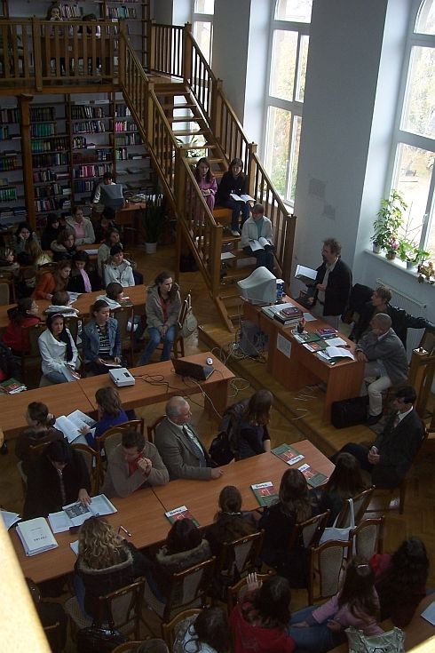 Szóval az olvasóterem megtelt, a sajtóbácsi is rajtra készen állt. Mindenki izgalommal ült, s várta a nagy meetinget.