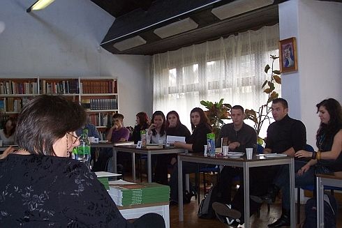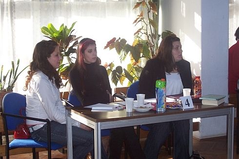 Ezután következett a szóbeli rész, ami már őszinte félelmet ébresztett bennünk: kortárs bibliáinkat szorongatva próbáltunk menekülni tőle, és a másikra hárítani a beszélő szerepét. Hiába volt minden erőfeszítésünk, Elek és Szabó Tibor gondoskodott róla, hogy mindannyian szóhoz jussunk. Első rész: írj ajánlót! Megtettük: egyedüliként a Bárkáról, az irodalom tengerén sodródó hajóról, a fedélzetéről, az új színeiről. Második rész: Irodalmi Humorfesztivál. Minden erőnket, tudásunkat összeszedve eleget tettünk ennek a kérésnek is: rövid összefoglalót mondtunk a Várszínház, és a Bárka megrendezte eseményről, majd Grecsó Krisztián, Hajnali találkozás című művéből olvastunk részletet.
