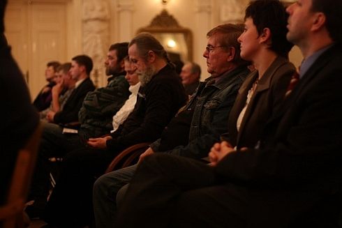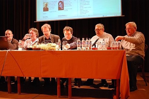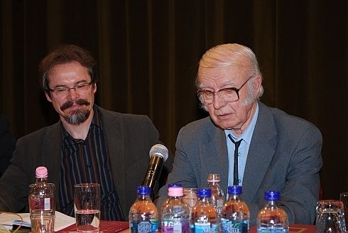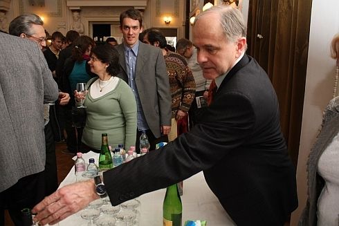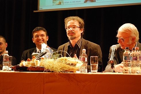 Az est utáni állófogadáson (háttérben Darvasi Ferenc)