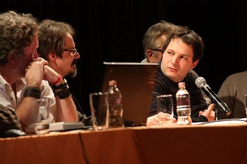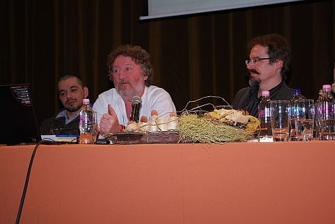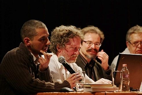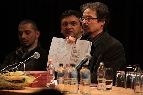 Darvasi Ferenc irodalom- és színikritikus, a fiatal nemzedék egyik legtehetségesebb alkotója. A Bárkában jelent meg első írása, s azóta is rendszeresen jelen van a lapban kritikáival, tanulmányaival, esszéivel. Színház és irodalom viszonyáról beszélt, s közös gyermekükről a drámáról, melyet szó szerint értve is az irodalom harmadik műnemének nevezett. A próza és a líra az, amivel egy író általában foglalkozik, a dráma területén pedig egyre kevésbé van szükség az íróra. Ma különösen nehéz helyzetben van a drámaíró, mondta Darvasi Ferenc. Az is bolond, aki drámaíróvá lesz ma Magyarországon, mondhatnánk ezután. Különösen a kívülről jövő írónak nehéz, folytatta a kritikus, hiszen most az a trend érvényesül a színi gyakorlatban, hogy a színházban, a társulatra írják meg a szövegeket. A szövegcentrikus színház pedig leáldozóban van, a szó egyenrangúvá válik a látvánnyal, mint a színész a díszlettel. Merész, bátor cselekedetnek nevezte Darvasi Ferenc a Jókai Színház kortárs magyar évadát, mert pesti színházak ennél sokkal kevesebbe is belebuktak már. Az okos koncepció, a műfajok sokszínűsége viszont győzelemre viheti az elképzelést, amihez a jól sikerült indítás is bizodalmat ad.