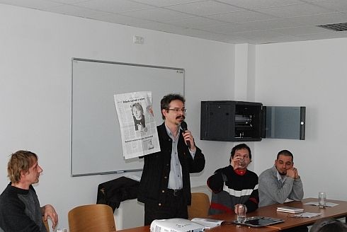 Március 18-án a Békéscsabai Központi Szakképző Iskola Trefort Ágoston Tagintézményében tartott irodalmi délutánt a Bárka csapata. A mintegy nyolcvan diák előtt futó program csúcspontjaként Elek Tibor főszerkesztő nyilvánosság előtt először köszöntötte József Attila-díjasként lapunk munkatársát, Kiss Ottó költőt, írót. Sajátos (de nem egyedülálló) szempont szervezte a produkció felépítését: a Bárka érettségi tétel az iskolában. Elek Tibor lapbemutató kiselőadása után a megjelent szerkesztői-munkatársi közösség tagjai ízelítőt adtak műveikből, Kiss László a Szindbád nem haza megy című első kötetéből olvasott fel egy prózarészletet, Kiss Ottó gyerekversekkel szerepelt, Szabó Tibor Benjámin az egyik online-tárcáját olvasta, a program zárásaként pedig Elek Tibor osztotta meg a publikummal egyik (net)naplójegyzetét.