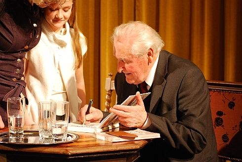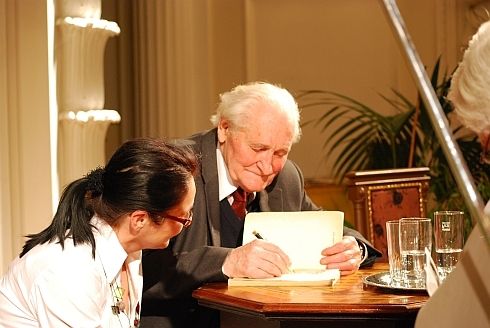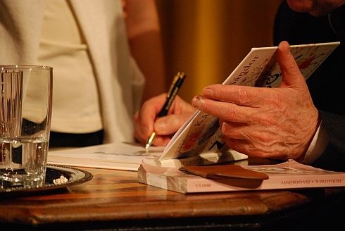 Kilenc körül szakad fonala a mesének. Az est után kígyózó sorok Kányádi asztalánál, dedikáció, fényképezkedés közel egy órán keresztül, felemelő és kissé bizarr egyszerre, ahogyan mindenki váltani akar néhány szót a mesterrel, a közelében lenni, megérinteni akár. Kányádi egy idol.