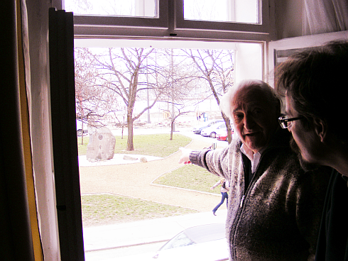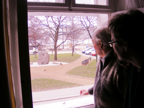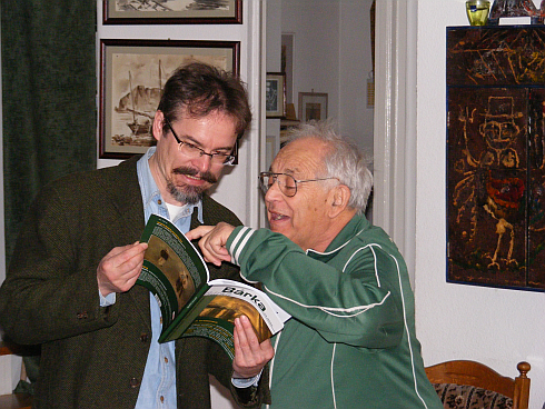 Vendégszeretetüket a Bárka szerkesztői, különböző okok miatt, csak nagyon rövid ideig élvezhették, de a találkozás így is emlékezetes marad számukra. Kányádi Sándor a friss Bárka-számba lapozott bele nagy érdeklődéssel, lapunk munkatársai pedig az egykori Securitaté 16 kilónyi román nyelvű ügynökjelentéseibe pillanthattak bele, de Sándor bácsi lakása ablakából Benedek Elek apó kútjára is kitekinthettek. Erdélyi Lajosnál nemcsak a méregerős feketével ismerkedhettek meg (ebben van kávé! – mondta a művész felesége – volt!), de néhány olyan fotó eredetijével is, amely végül nem került a kiállított anyagba. Ekkor még úgy (is) volt, hogy talán Erdélyi Lajos is elutazik a Kányádi-köszöntővel egybekötött kiállítás megnyitóra, de végül ő, sajnos hiányzott a rendezvényről.