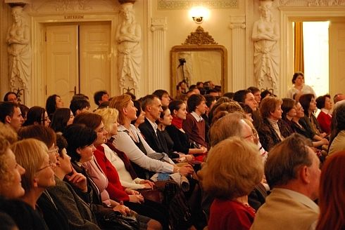 A fellépés egyik kedves effektusa a 80 éves költő zsebében megcsörrenő mobiltelefon. Elegánsan, kedvesen oldja meg. Derültség, nem középiskolás fokon.