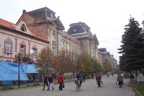 Impozáns rom. A Kárpátaljai Magyar Főiskola épüélete Beregszászon. Belül már szépen felújították, az utcáról nézve leharcolt óriás