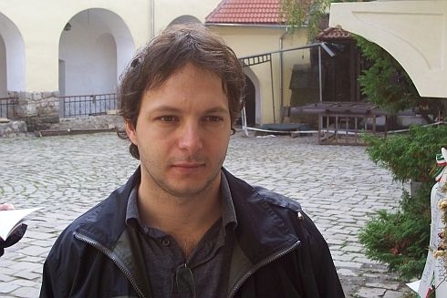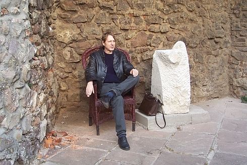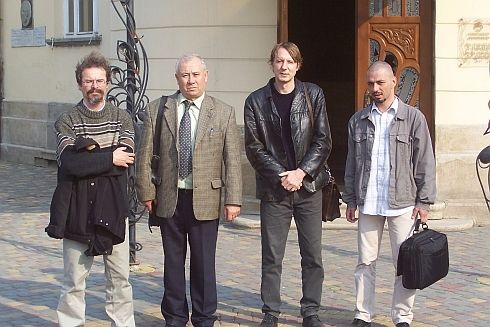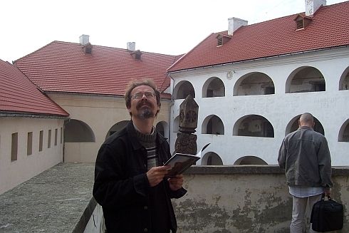 Vendéglátónkkal, Vári Fábián Lászlóval a beregszászi úri kaszinó (ma étterem) előtt